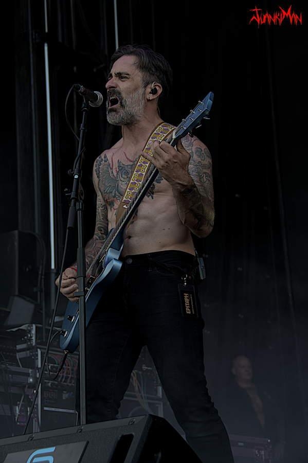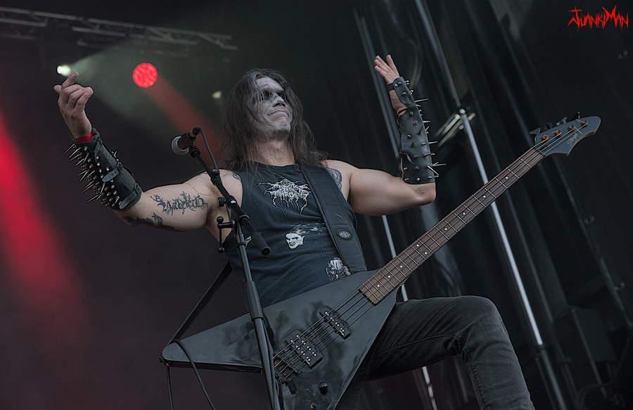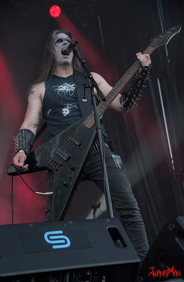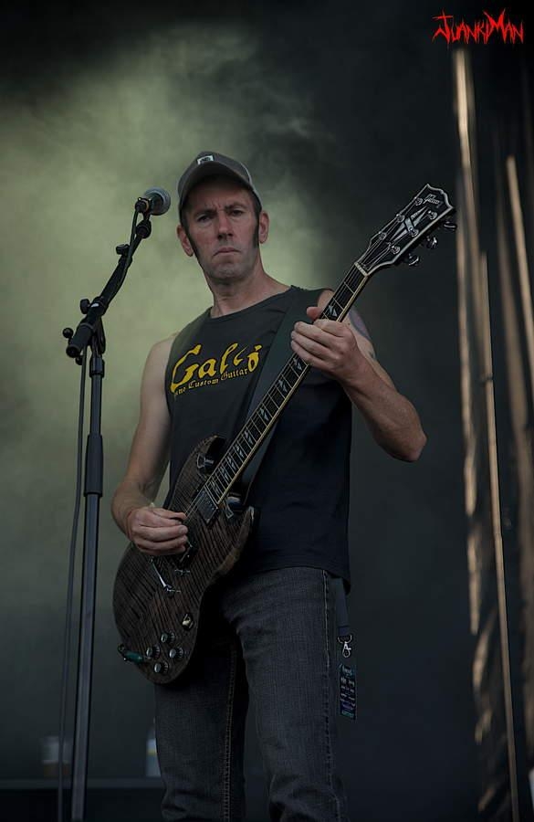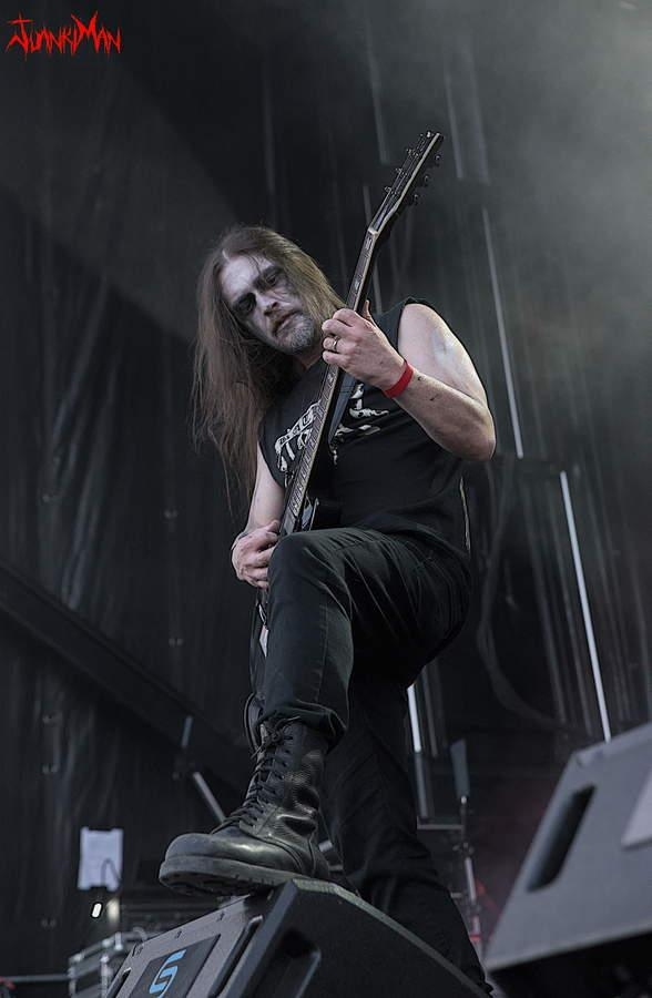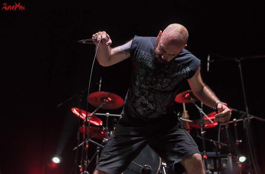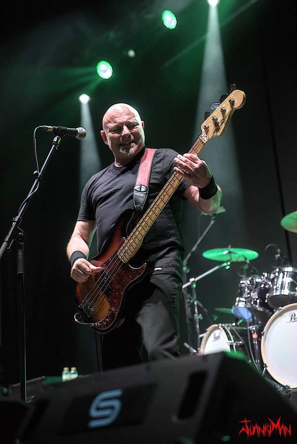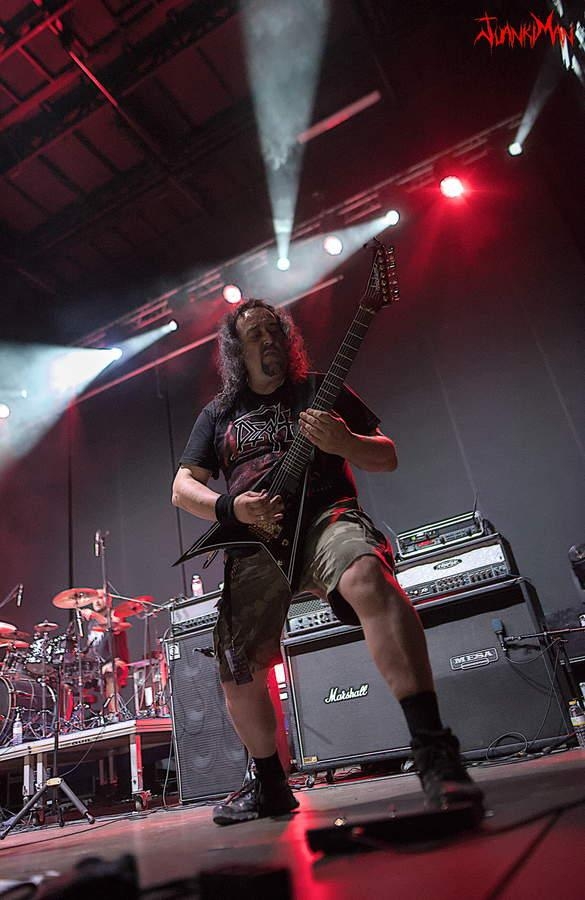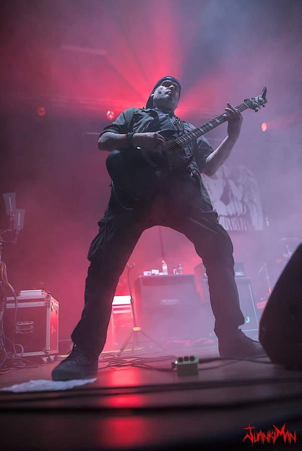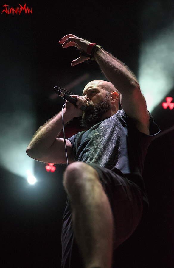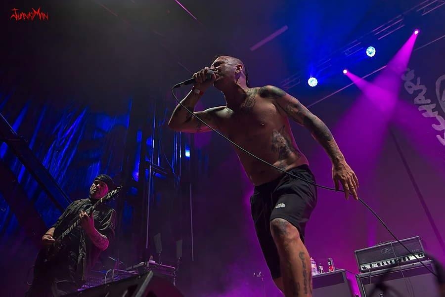 Los siguientes en la lista de aparición son la banda más longeva de esta edición, DISCHARGE. Su Hardcore/Punk con tintes de Metal es legendario y ha influenciado a múltiples bandas. Llegaban en plena forma, sembrando la locura en toda la parroquia. Un JJ Janiak pletórico no paró un solo momento quieto. Tampoco la gente permaneció impasible. Continuos pogos y asaltos al foso que la organización canalizaba recogiendo a cuantos aparecían volando sobre las cabezas del KANEKAS. No fueron pocos. Todo con un ambiente festivo y divertido. Se podían ver mezclados entre el público, melenas al viento, crestas imposibles, disfraces… Todo el mundo disfrutaba en armonía al frenético ritmo que marcaba DISCHARGE.