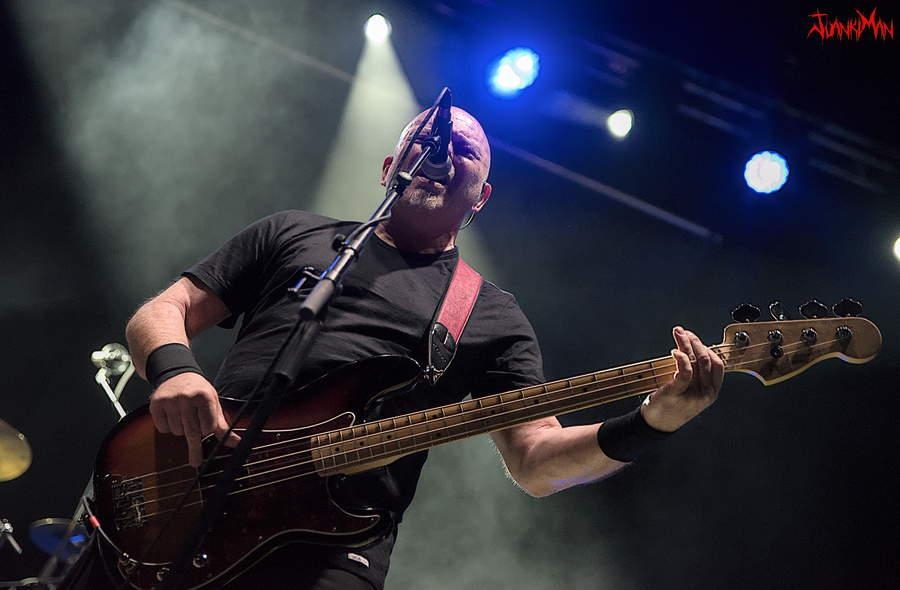 Con DISCHARGE se marcó un antes y un después. ¡La gente del KANEKAS despertó! JJ Janiak se descamisó y fue un no parar. Excelente sonido, excelente interpretación, ganas de divertirse en el público y una banda que enganchó con los presentes. La comunión entre público y banda se sublimó cuando el vocalista descendió la rampa de acceso al escenario para, desde el foso, continuar con sus labores de cantante al tiempo que se unía al público al que ofrecía el micrófono para que su bramido saturara aún más el sonido ya salvaje del concierto. Recorrió toda la valla del foso parando aquí y allá: entre el rugir del público, brazos con puños y cuernos al viento, jolgorio en el respetable, buen rollo en los músicos y en resumen una experiencia catártica en la que nos recreamos todos. Era necesario un receso, para recuperar y recibir, como era menester, a CORONER. El siguiente aluvión de metal se aproximaba al KANEKAS.