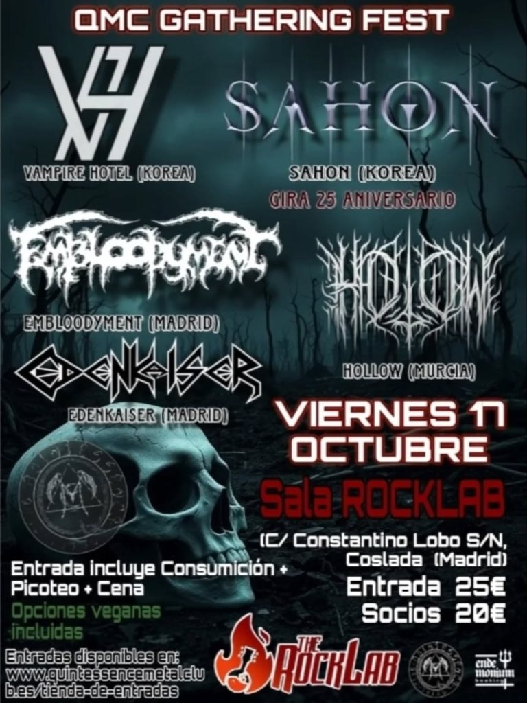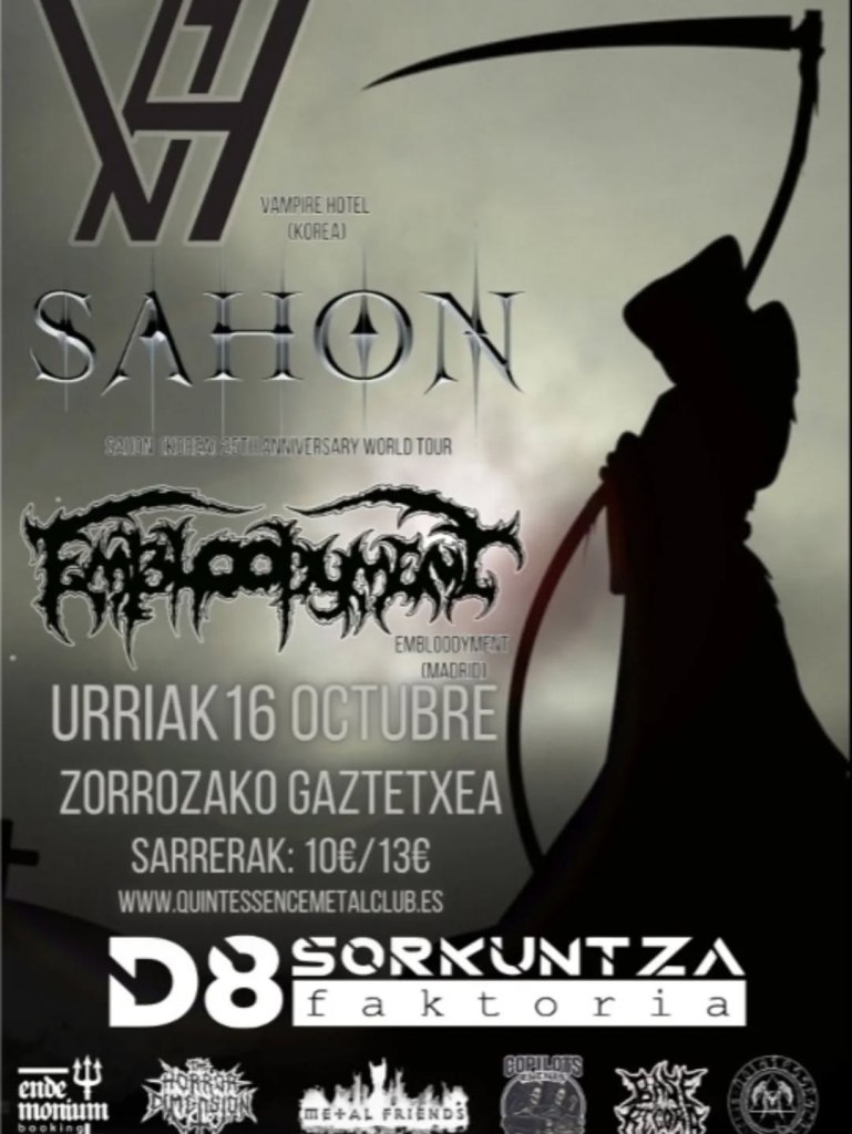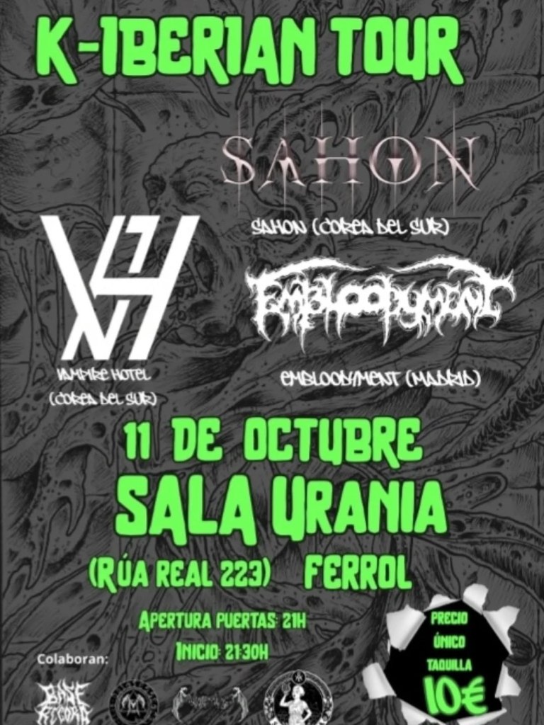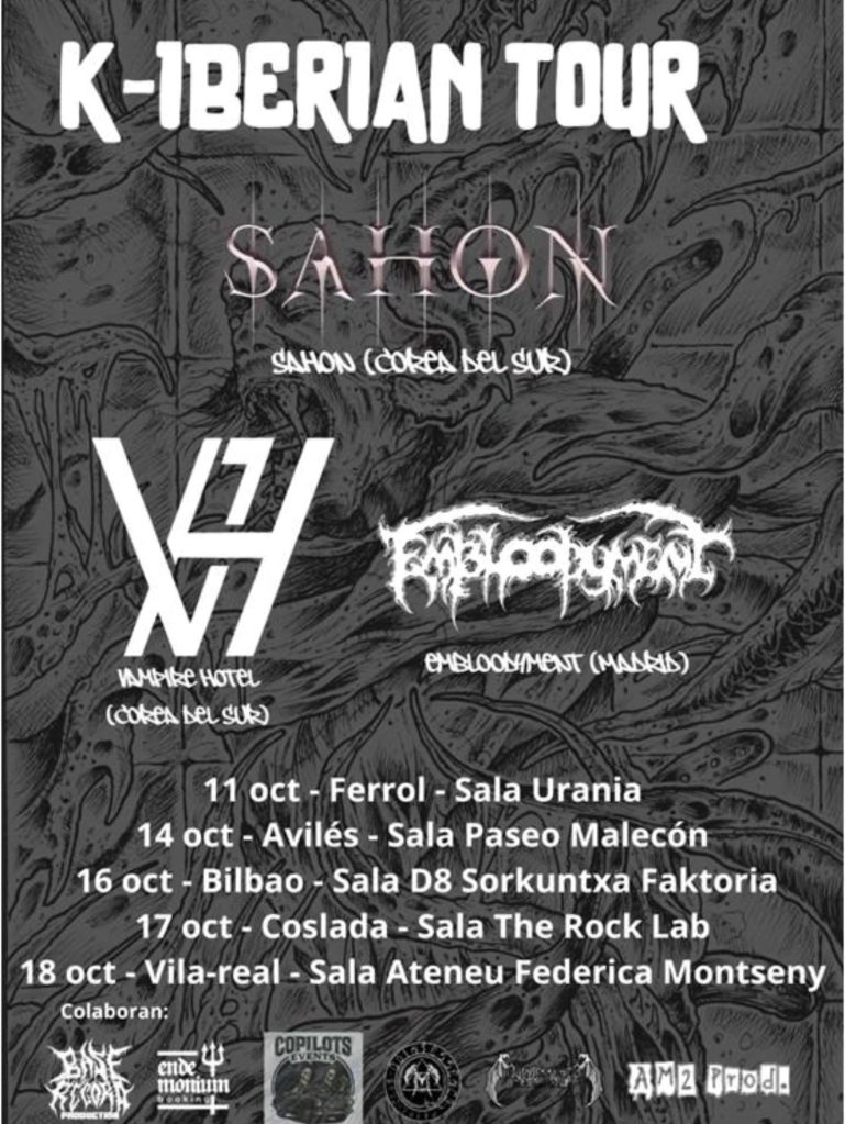 채승학(SEUNGHAK CHAE): Sinceramente, una mezcla de todo eso. Al principio, Sahon y Vampire Hotel buscaban una gira europea, tocar en Alemania, Francia,… y luego viajar a España y pasar por Portugal. Nosotros les habíamos comentado que organizábamos su paso por España, con dos grandes fechas, una en Madrid y otra en Barcelona, porque ya sabes, estos «guiris» es lo que buscan y conocen, las dos grandes ciudades, y el resto del país no existe para ellos. Con el paso del tiempo, el tema de Alemania no salió, y Francia estaba también en el aire, y se nos ocurrió ampliar las fechas aquí en España a cinco, intentar cubrir cuantas mas fechas mejor, y aunque Barcelona no llego a cerrarse, si que se ha hecho en otras ciudades, que no tienen tanto nombre pero en las que hay mucho ambiente metalero. Les convencimos de que era una buena idea, que lo iban a disfrutar, y se acabó montando así esta gira.