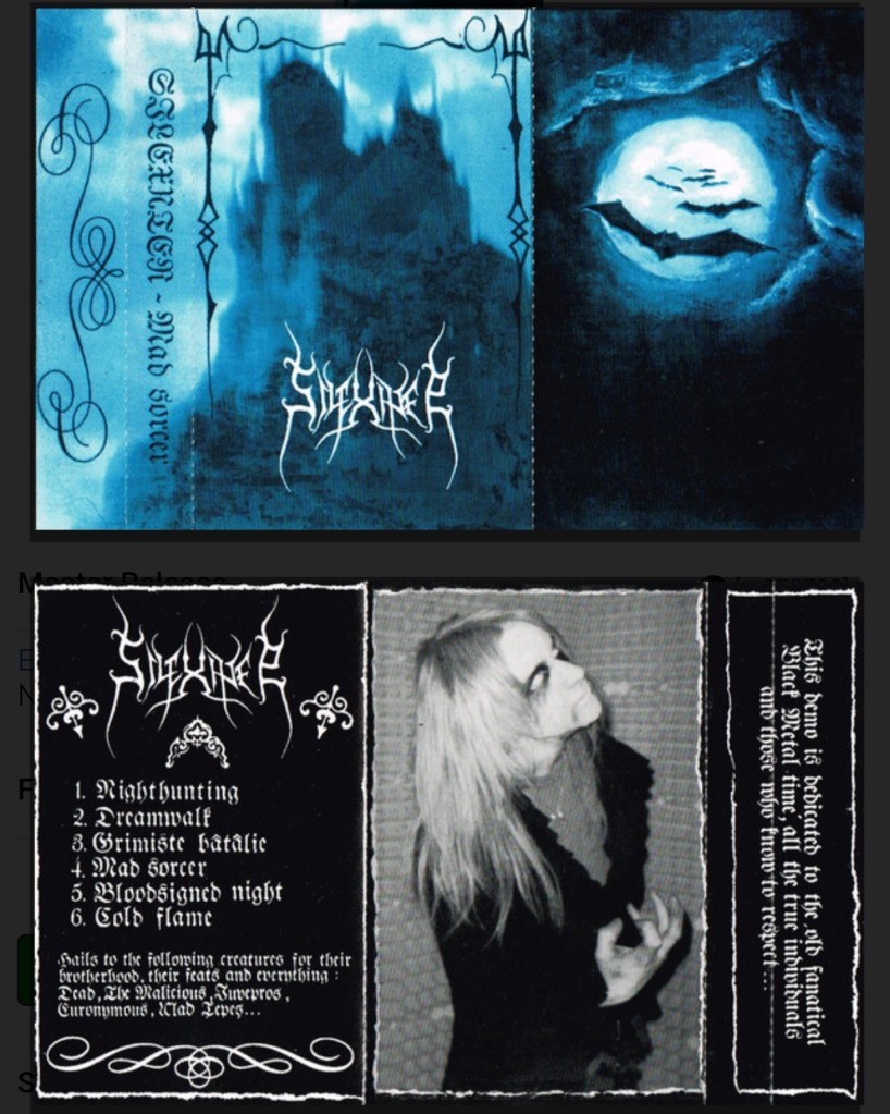 Esta entidad no tardó mucho en pronunciarse, teniendo bien claro desde un principio cuales serían sus intenciones a la hora de proclamar sus conjuros para así ahogar a todo autoproclamado ser de luz entre insondables tinieblas. En lo que estimo fue la ultima mitad del mismo 1994 pues no hay referencia alguna en cuanto a fecha exacta. Y la propia elaboración, para tratarse de una demo al uso, me sugiere un proceso tan arduo como exhaustivo. El primer trabajo que apareció ante Neófitos mortales e Iniciados, Mad Sorcer, aúna fuerzas etéreas como físicas en una conjunción única, siempre sin dejar de lado un aura tan mística como extraña. Sin embargo esta primera edición fue corregida por así decirlo en 1996, siendo entonces su lanzamiento oficial real. ¿El motivo? Un tema extra por añadir a un total de 6, abarcando en conjunto 36 minutos. Otra capa más de misterio añadido es el hecho de que, gracias a cierto Archivista Arcano, se ha visto que Mad Sorcer aparece precisamente referenciado en el único poster/flyer existente de Blackstone, nombre con el que anteriormente se conocía a Silexater como ya os conté anteriormente.