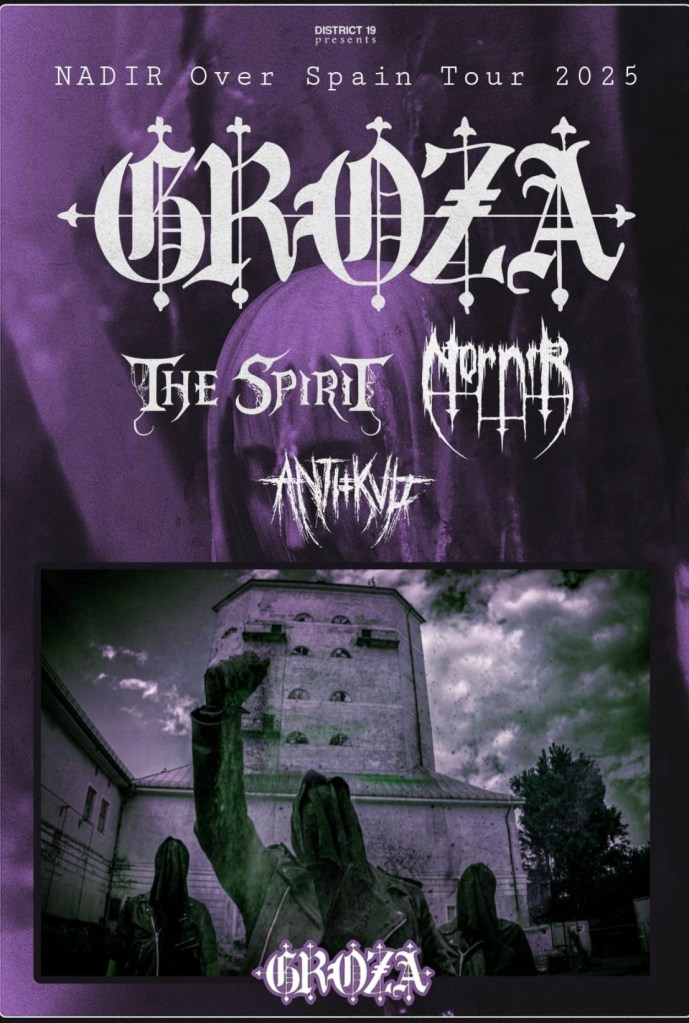 The Spirit, Ante-Inferno y Antikvlt tenderán un puente de plata para que la maquinaria de Groza vuelva a atronar en nuestro territorio, también en tres fechas, Madrid, Barcelona y Bilbao.