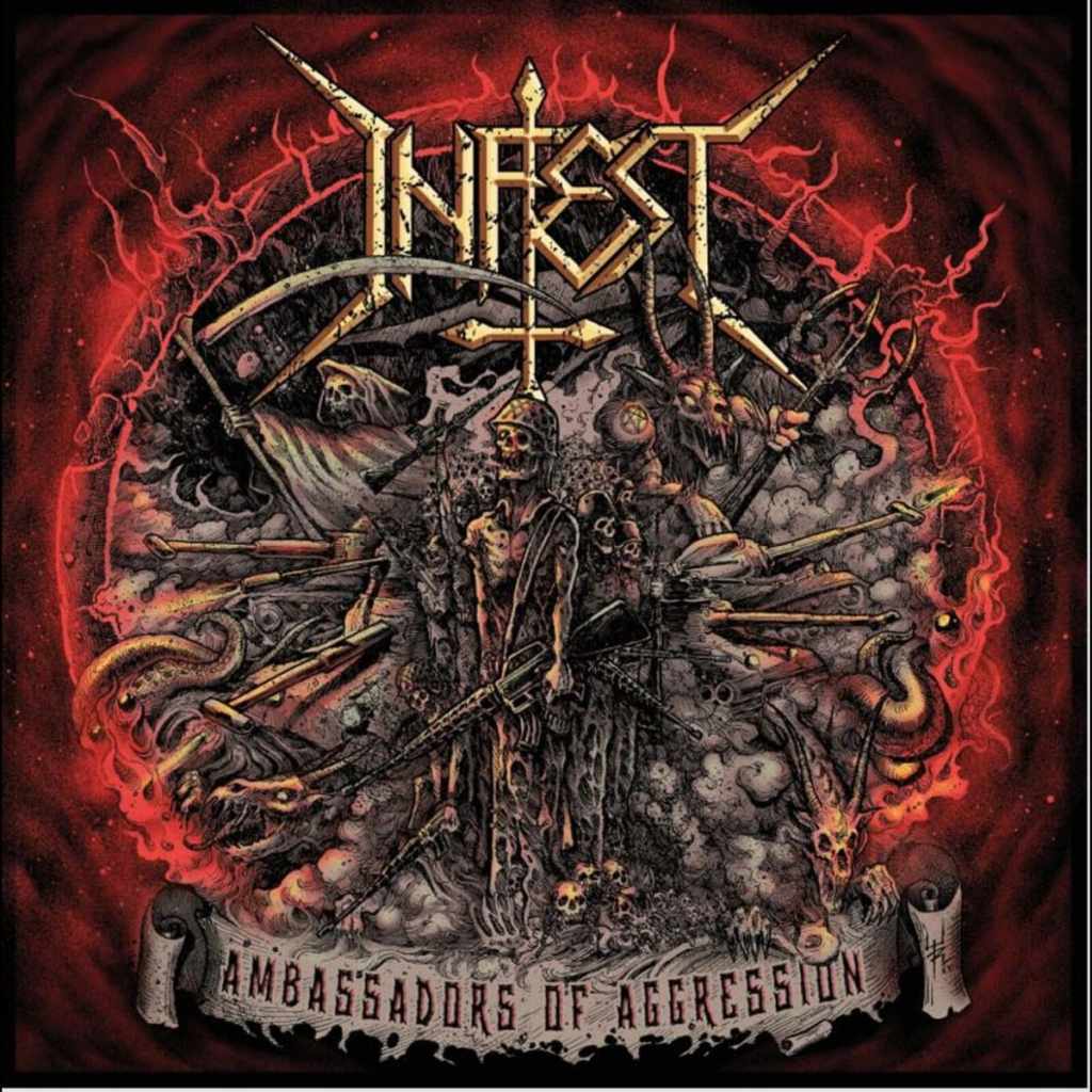 Séptimo trabajo de los Serbios INFEST, y siguen con su poderoso Death/Thrash agujereando los tímpanos de todo aquel que se atreve a adentrarse en sus redes sónicas. Con Ambassadors of Aggression siguen siendo fieles a su estilo con muchas influencias de grupos como KREATOR, SLAYER o SEPULTURA en etapas donde jugueteaban con el thrash y el death, y sobre todo grupos como VADER o KATAKLYSM de principios de los dosmiles.