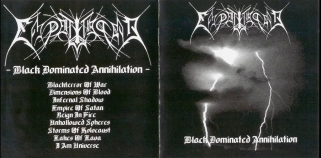 Mención curiosa cuanto menos es “Lakes of Lava”, penúltimo tema. Tras un “Storms of Holocaust” que aprieta el ritmo un tanto más de lo habitual, “Lakes of Lava” toma una cadencia más habitual dentro del género en un punto que hasta podría considerarse “lento” para Empaligon. Sin embargo eso tampoco supone un problema, en absoluto. No solo resulta un tema bueno por si, si no que tiene cierto ritmo o “groove”. Todo ello sin dejar de resultar tan amenazante como el resto de tan arrollador Black Dominated Annihilation, encajando perfectamente con el resto de un LP que, me atrevería a decir, llegó a encumbrarles lo suficiente. Llegando aparentemente al punto de reclutar a Havoc como cuarto miembro. Entidad mas conocida como Malfeitor llegando a tocar en bandas como Excoriate y Toxic Holocaust en vivo, o Nyktalgia y Krieg en estudio con el tiempo. Cubriendo para con Empaligon guitarras en actuaciones vivo, de las cuales no hay registro alguno muy a mi pesar, en el año 2001.