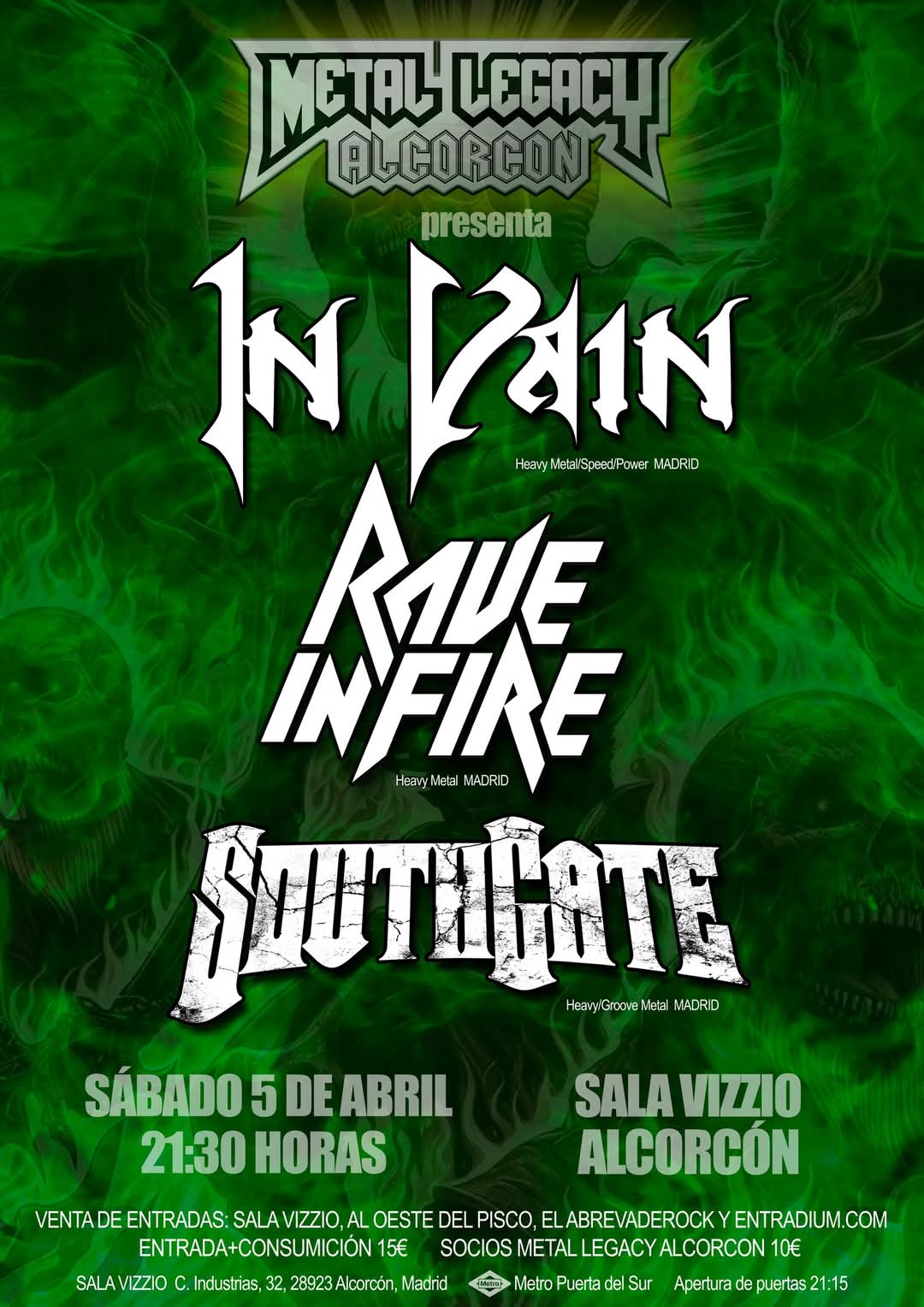 Previa IN VAIN + RAVE IN FIRE + SOUTHGATE (05.04.25 Sala Vizzio Alcorcón)