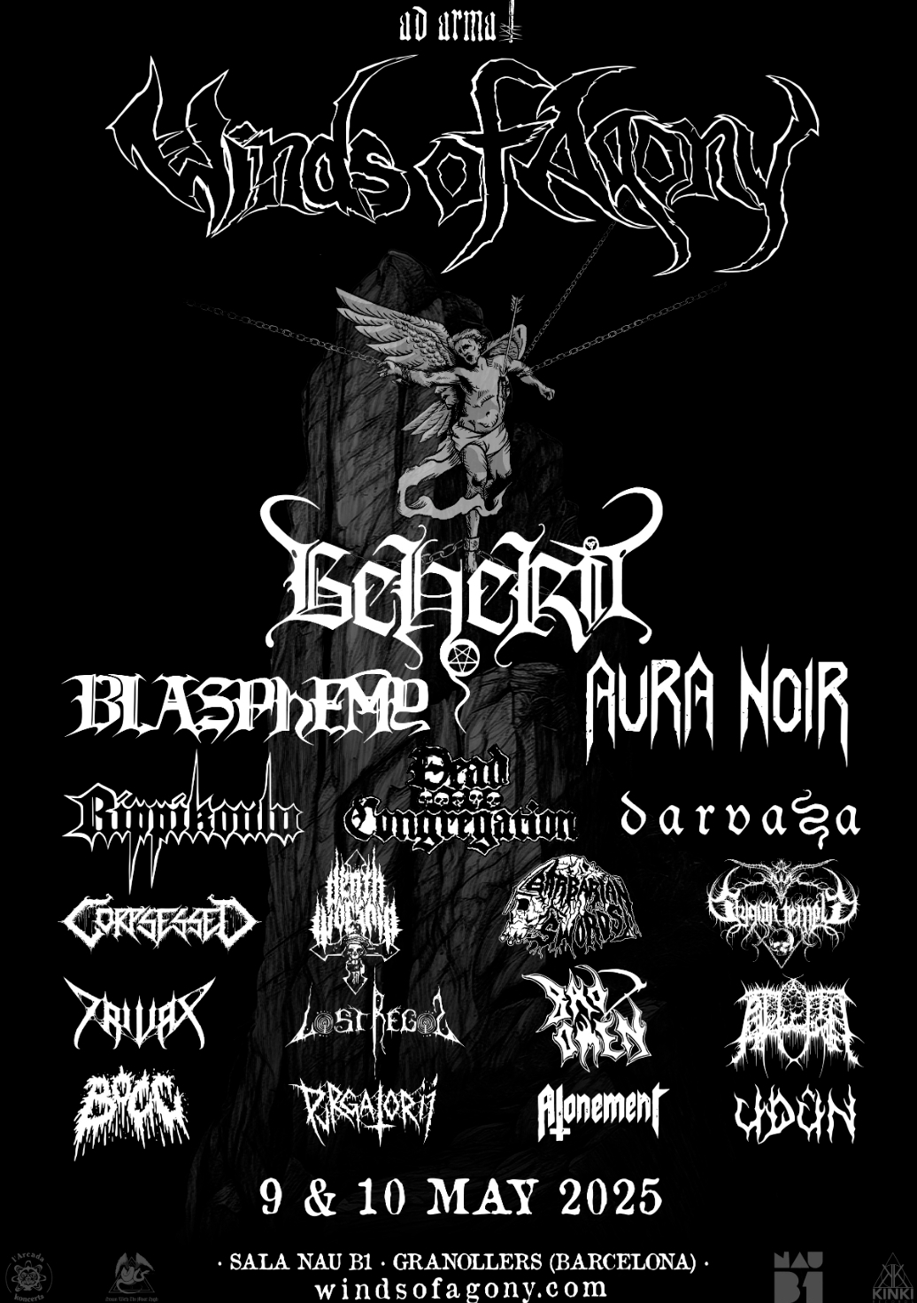 Nota de prensa Beherit, la legendaria formación de black metal de Finlandia, es el cabeza de cartel del festival Winds Of Agony que se celebrará el 9 y 10 de mayo del próximo año en Granollers, Barcelona. Antes, la promotora Ad Arma! ya había confirmado la presencia de bandas no menos míticas como Blasphemy, Aura Noir o Rippikoulu. Así, un total de 18 grupos de … Sigue leyendo BEHERIT cierra el cartel del Winds Of Agony